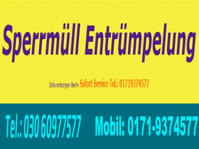 Wenn der Kunde uns telefonisch Entrümpler Sperrmüll Möbelentsorgungen Berlin kontaktiert, können telefonisch alle Details zur Sperrmüllabholung Elbestr 6 von Sperrmüll in besprechen. Es wird preiswert sein.